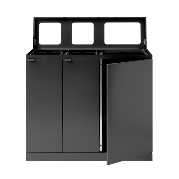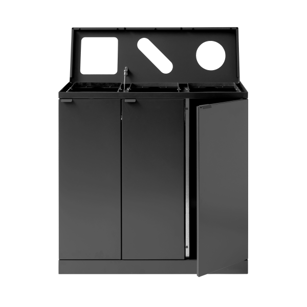 Avfallssortering innendørs bør være et permanent element i interiørdesignet til bedrifter og offentlige institusjoner. Et kombinert avfallsmøbel eller avfallssorteringssystem med 3–4 fraksjoner samlet skaper effektiv sortering. Du kan enkelt koble en enkelt avfallsbeholder til en 3-fraksjonsbeholder ved hjelp av sterke magneter eller installere en justerbar hylle for ytterligere oppdeling.