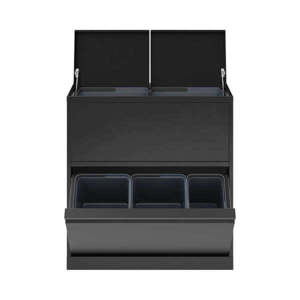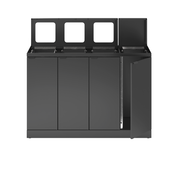 Bica Model 883 Avfallssortering 4×45 liter Løftelokk/åpne innkast Antrasitt