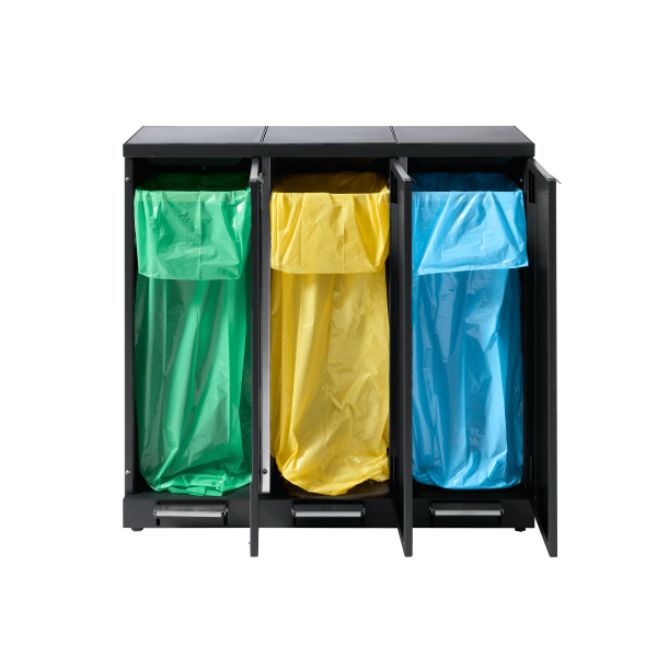 Bica Model 875 Avfallssortering 3×65 liter Løftelokk/formede innkast