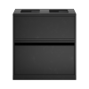 Avfallssystemet er utstyrt med frontdører med soft close for ergonomisk riktig tømming uten tunge løft. Avfallssystemet er utstyrt med integrerte og sterke poseholdere, slik at posen blir liggende. Lokket skjuler også posene, slik at avfallssystemet holder et stilrent design. Avfallssystemet er mobilt takket være de monterte hjulene, som er skjult bak sokkelen. Avfallsløsningen leveres med et magnetisk veggfeste som den skal festes til.