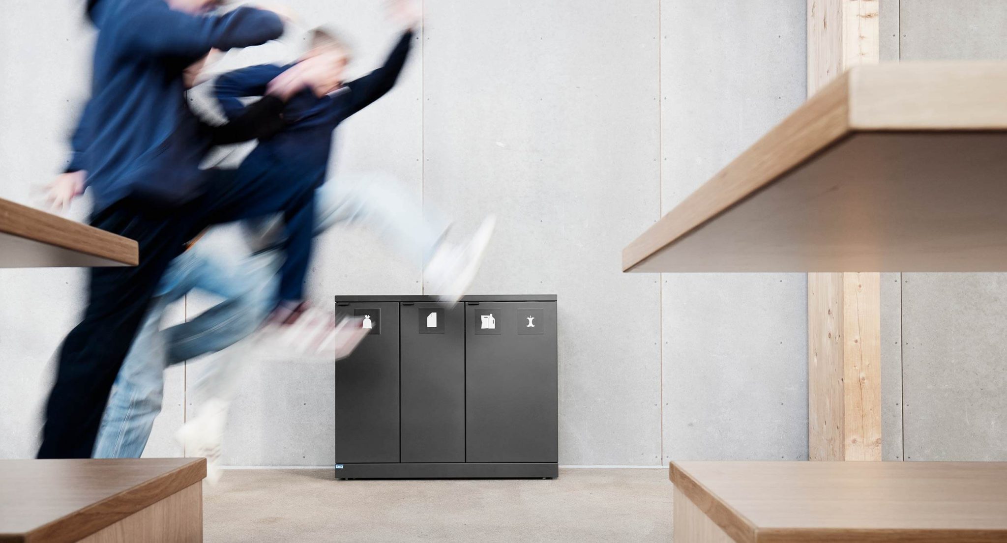 Flytt avfallsløsningen enkelt ved rengjøring. Bak sokkelen sitter kraftige hjul skjult, slik at løsningen enkelt kan flyttes, men fortsatt beholder sitt stilrene uttrykk.