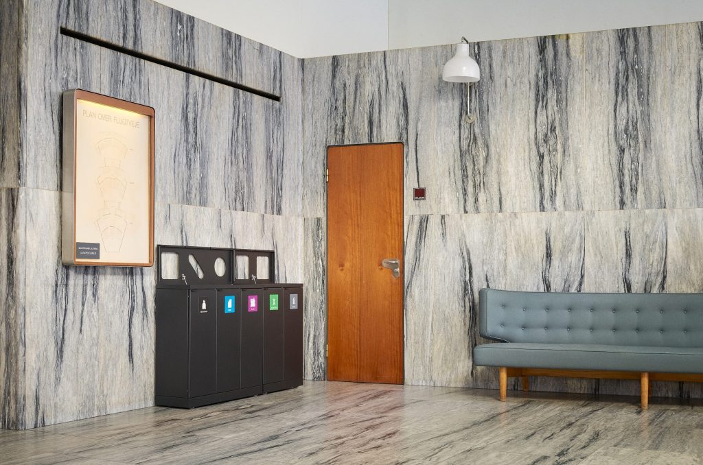 I gangene ble avfallssystemene montert med beslag på veggen for å unngå,