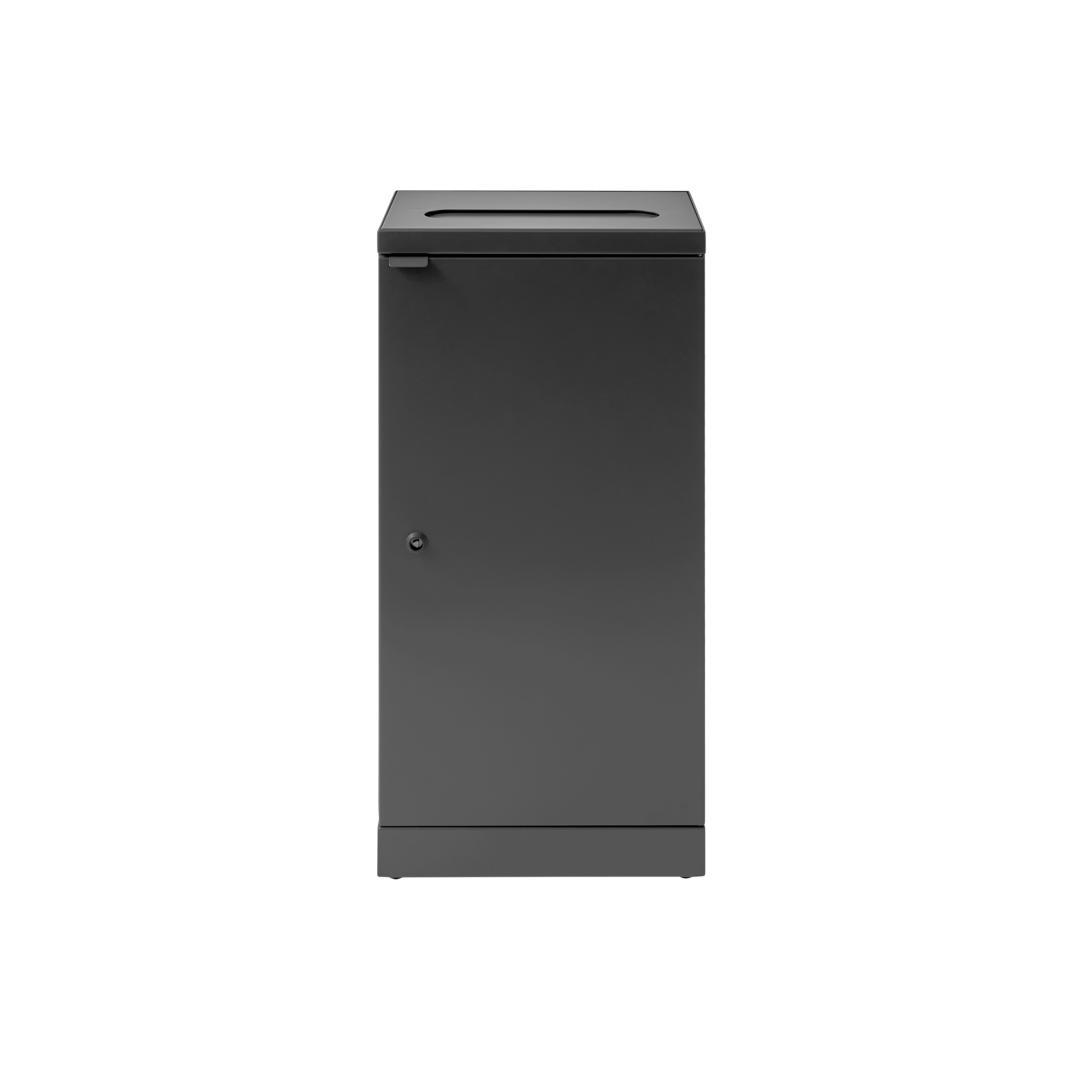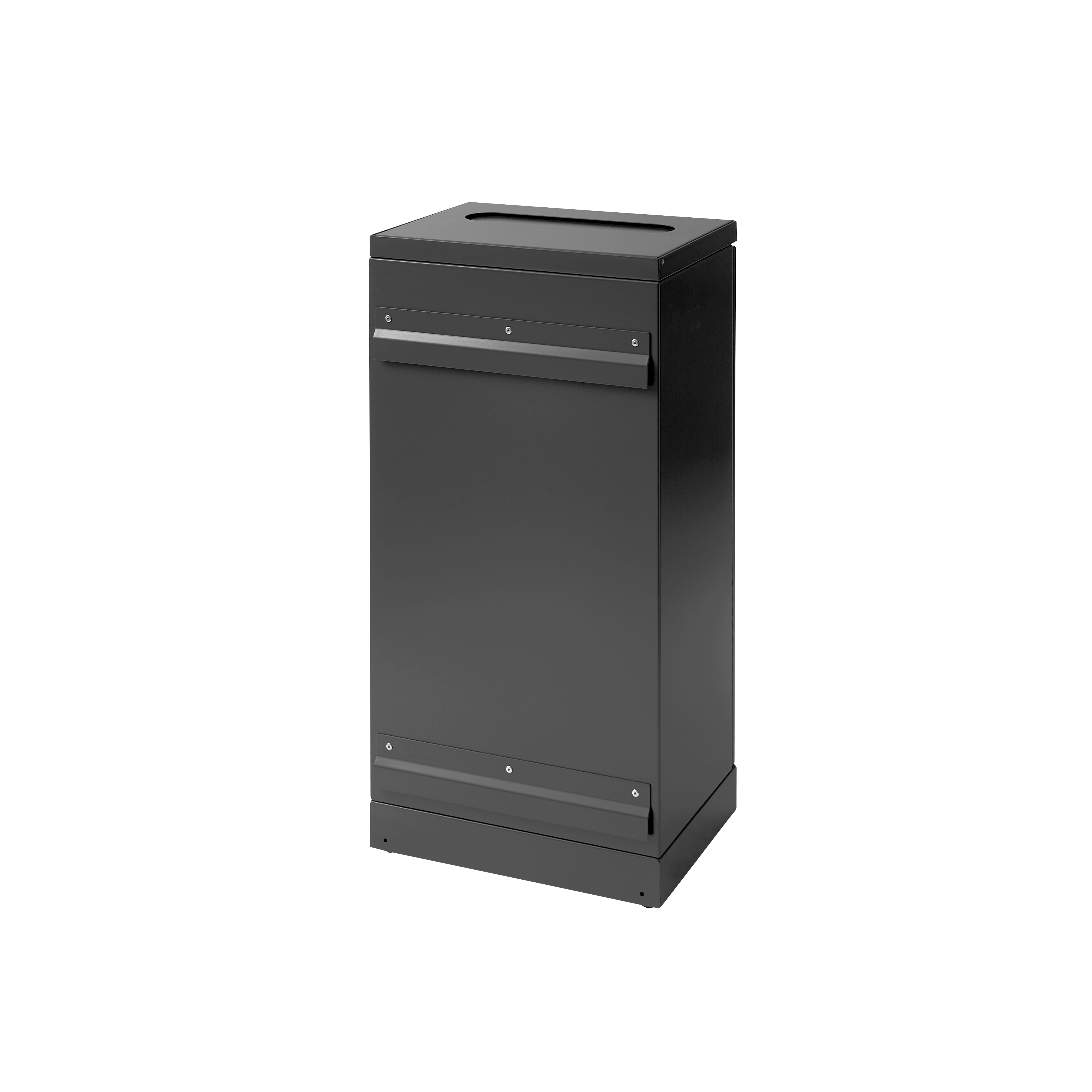 Avfallsbeholderen er utstyrt med inngangsdører for ergonomisk riktig tømming uten tunge løft. Avfallsbeholderen er utstyrt med en integrert og sterk poseholder slik at posen holder seg på plass. Lokket skjuler også posen, slik at avfallsbeholderen holder et stilrent design. Avfallsbeholderen er utstyrt med justerbare føtter, som er skjult bak sokkelen.