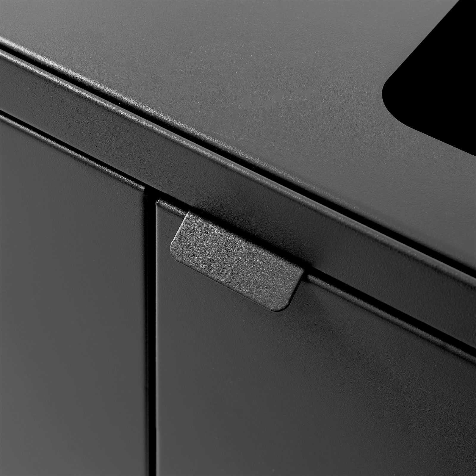 Kildesortering er utstyrt med frontdører med soft close for ergonomisk riktig tømming uten tunge løft. Avfallssystemet er utstyrt med integrerte og sterke poseholdere, slik at posen blir liggende. Det er montert et gassspjeld i lokket for lydløs og stille lukking, og lokket skjuler også posene, slik at avfallssystemet holder et stilig design. Kildesortering er mobilt takket være de monterte hjulene, som er skjult bak sokkelen. Avfallsløsningen leveres med et magnetisk veggfeste som den skal festes til.