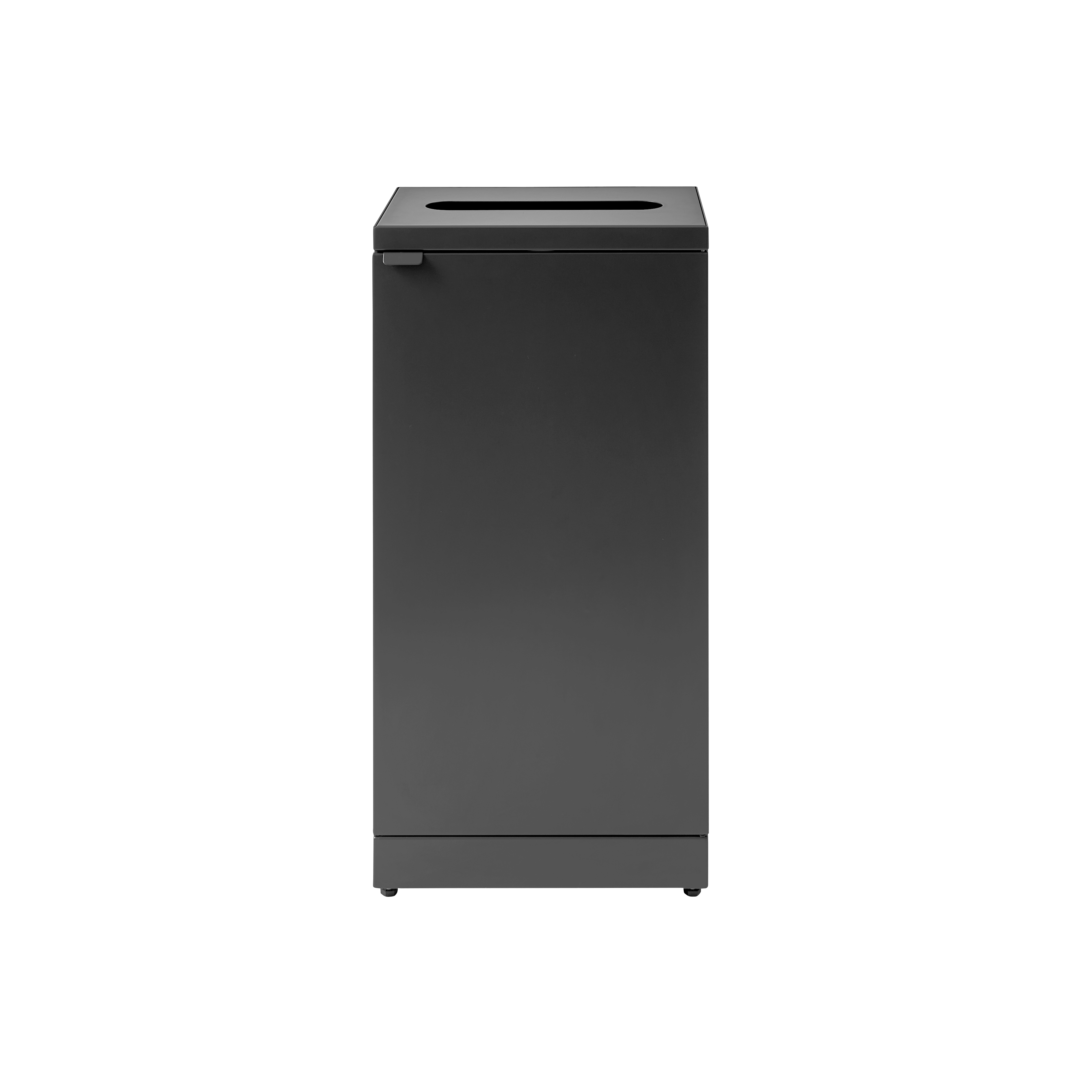 Avfallsbeholderen er utstyrt med frontdører med soft close for ergonomisk korrekt tømming uten tunge løft. Avfallsbeholderen er utstyrt med en integrert og sterk poseholder slik at posen holder seg på plass. Lokket skjuler også posen, slik at avfallsbeholderen holder et stilrent design. Avfallsbeholderen er utstyrt med justerbare føtter, som er skjult bak sokkelen.